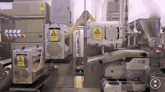 几千平方的厂房里,干净整洁,机器24小时不休息的工作,看不到一个员工。从和面、放馅再到捏水饺,是一条完全干净整洁的流水线: